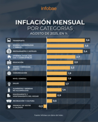 La inflación de agosto fue de 1,9% y acumuló 33,6% en los últimos doce meses